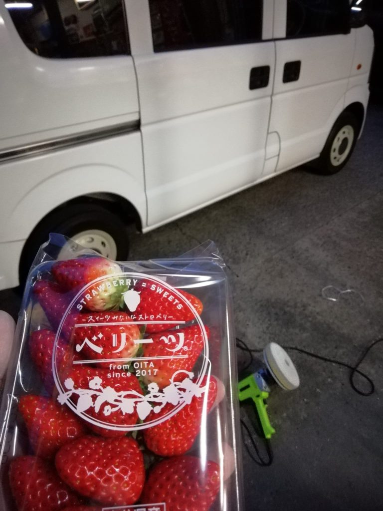 ご褒美の差し入れ🍓 トータルプランタグチの活動 X Facebook LINE コピー 2024.03.31 日没タイムアウトで デスクワークへ突入 今夜もまだまだこれから! 先程、納車前のお車を仕上げ作業していたら ご近所様から 精が出ますね〜と差し入れを頂いてしまいました(*^^*) ありがとうございます #ご近所付き合い #なんでも屋 #トータルプランタグチ #大分県 #クルマ屋 #年度末